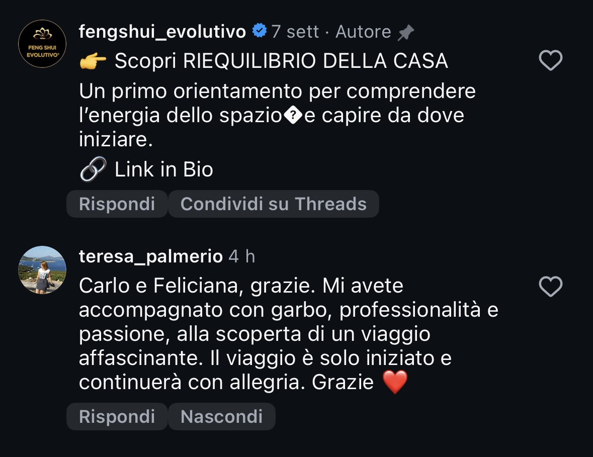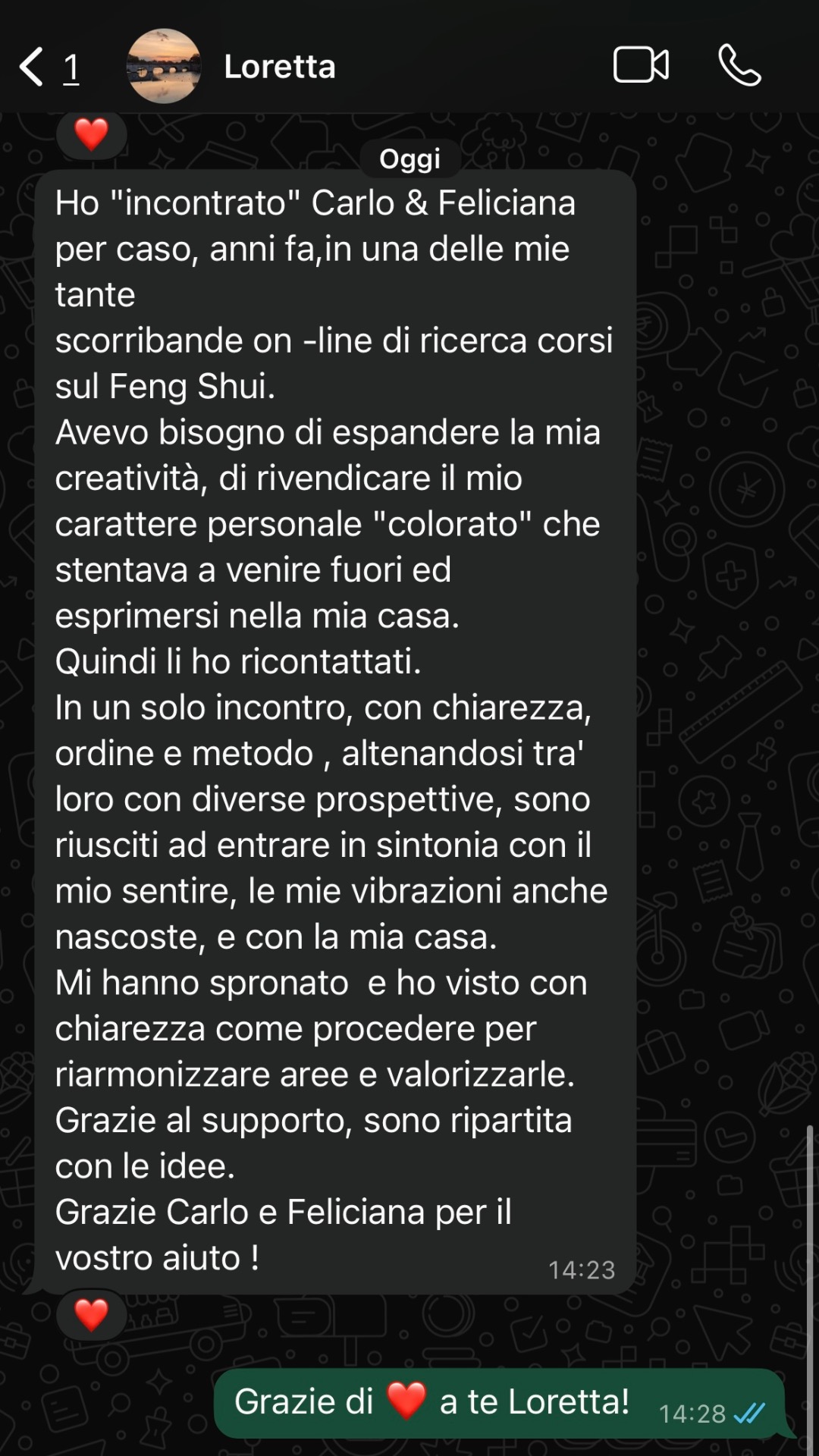 E grazie soprattutto all'applicazione del Metodo FENG SHUI EVOLUTIVO® e dei suoi benefici, abbiamo potuto assistere, da parte dei nostri clienti e corsisti dell'ACCADEMIA, alla nascita di una sana CONSAPEVOLEZZA di ciò che lo spazio abitativo può rappresentare, al fine di poterlo gestire al meglio e trarne il massimo beneficio, in termini di ARMONIA, BENESSERE e ABBONDANZA